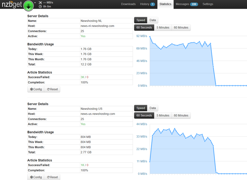 On vous conseille de télécharger avec le fournisseur Newshosting. La puissance de ce fournisseur me permet de télécharger 4,5 GB en 30 secondes.